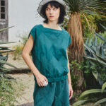 Weavegrid Top เสื้อแขนกุดผ้าทอทรงบ็อกซี่ โดดเด่นด้วยการ ตัดต่อผ้าแนวเฉียง 45° ผสมผ้าตีเกล็ดลายเรขาคณิต ที่จัดวางให้ลวดลายกลมกลืนราวกับไร้รอยต่อ (Seamless Surface Effect) เพิ่มลูกเล่นด้วย ชายเสื้อสอดยางยืด สร้างซิลูเอตที่ดูสบายแต่มีโครง