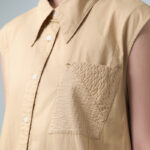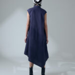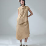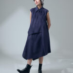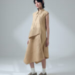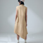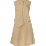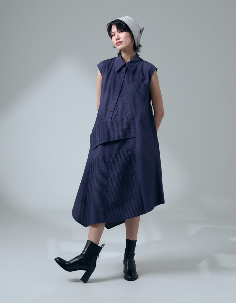 เดรสแขนกุดทรงเชิ้ต ถ่ายทอดผ่านการตัดต่อแนวเฉียง สร้างจังหวะของเลเยอร์และซิลลูเอตแบบไม่สมมาตร ให้ลุคเรียบที่ดูมีการเคลื่อนไหวในทุกมุมมอง เสริมดีเทลผ้าตีเกล็ดช่วงกระเป๋าและชายกระโปรง เพิ่มเท็กซ์เจอร์อย่างพอดี โดยยังคงความโปร่งและสวมใส่สบาย
